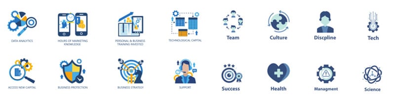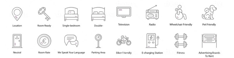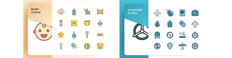 Bei der Buchung eines Icon-Sets ist es entscheidend, dass die Elemente in einem Set alle den gleichen Stil haben. Die Linienführung, Farbigkeit und Kategorie sollte eindeutig sein und zueinander passen. Die Kategorien eines Icon-Sets sollten leicht verständlich sein.