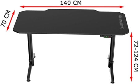 Der „Ultradesk“ ist der beste höhenverstellbare Gaming-Tisch, weil er zwischen 72 und 124 Zentimetern elektrisch einstellbar ist und das Gesamtpaket und Design für rund 309 Euro mit Abstand das beste Preis-Leistungs-Verhältnis besitzt.