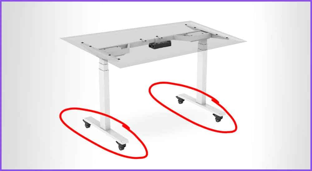 Höhenverstellbare Schreibtische gibt es auch mit Rollen unter den Tischbeinen, sodass eine hohe Flexibilität entsteht und der Tisch sehr einfach umhergefahren werden kann. Durch die Rollen muss ein Tisch nicht getragen werden und kann somit von einer einzelnen Person bewegt werden.