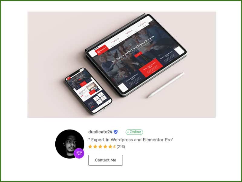 Erfahrene Freelancer bieten ihre Dienste an und setzen komplette Templates für dich um oder bauen mit Page-Buildern wie „Elementor Pro“ deine Wunsch-Webseite.